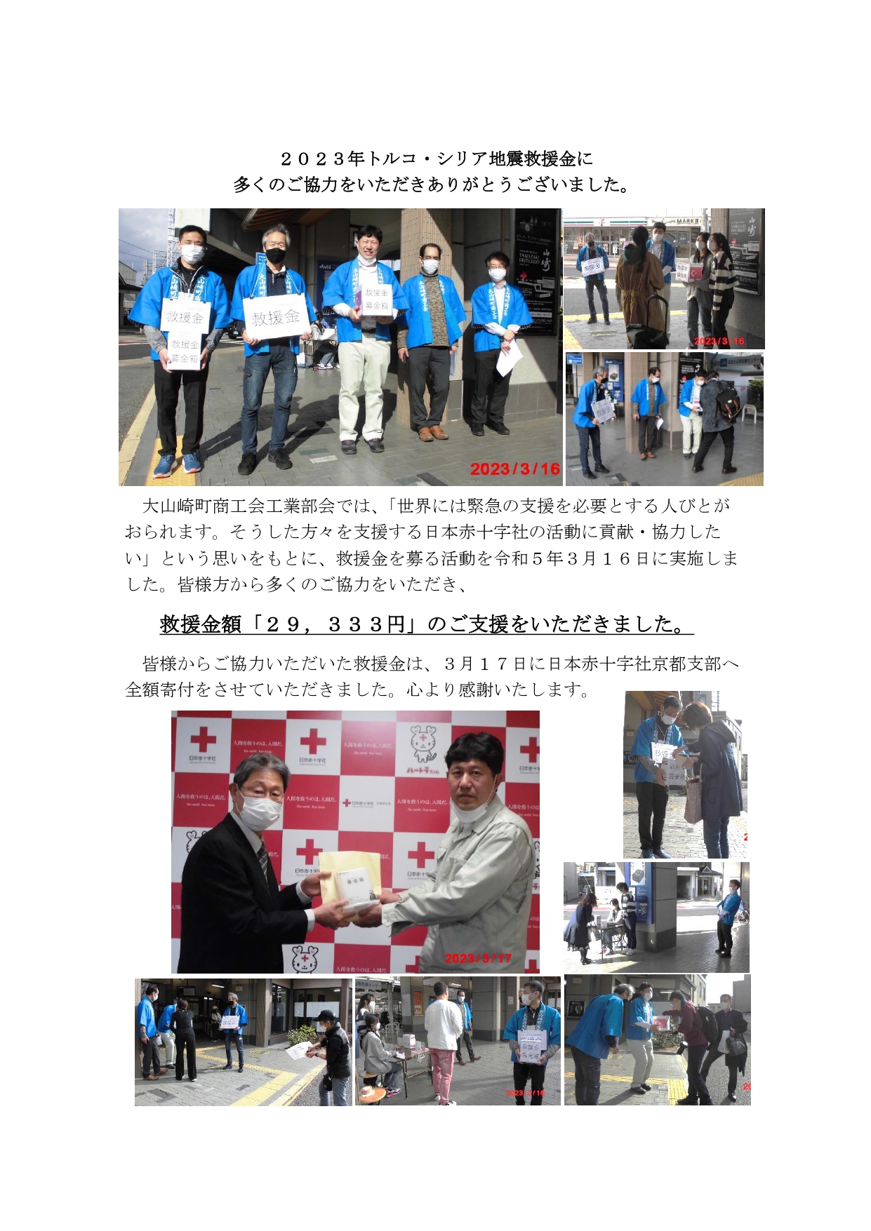 【工業部会】令和4年度事業トルコ・シリア大地震人道支援金を募る活動
