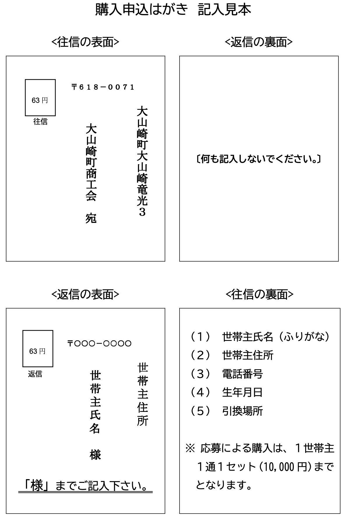 ● 申込み方法:「往復はがき(右の図)」に必要事項をご記入のうえ大山崎町商工会までにお申込み下さい。